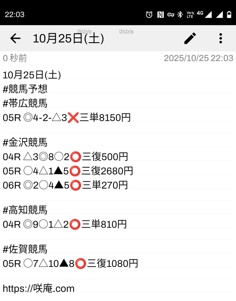 10月25日(土) 競馬予想