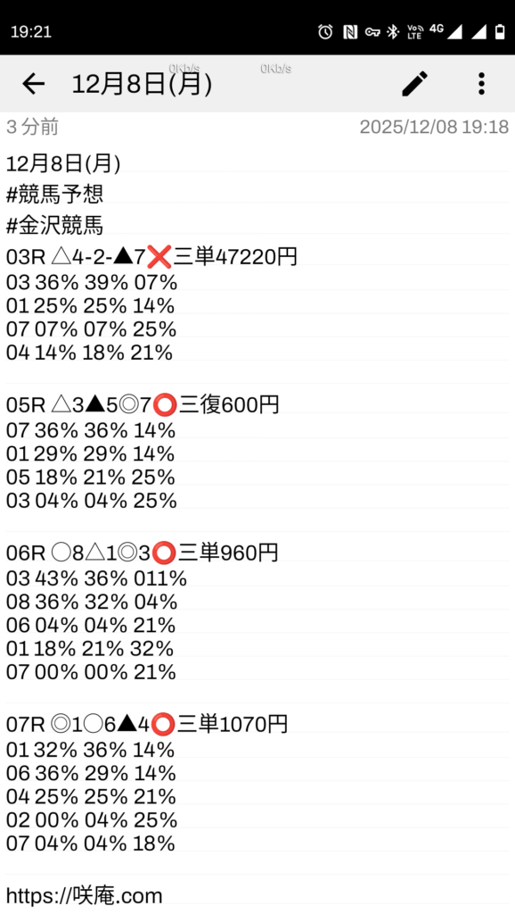 12月8日(月) 競馬予想