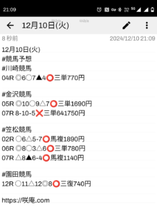 12月10日(火) 競馬予想