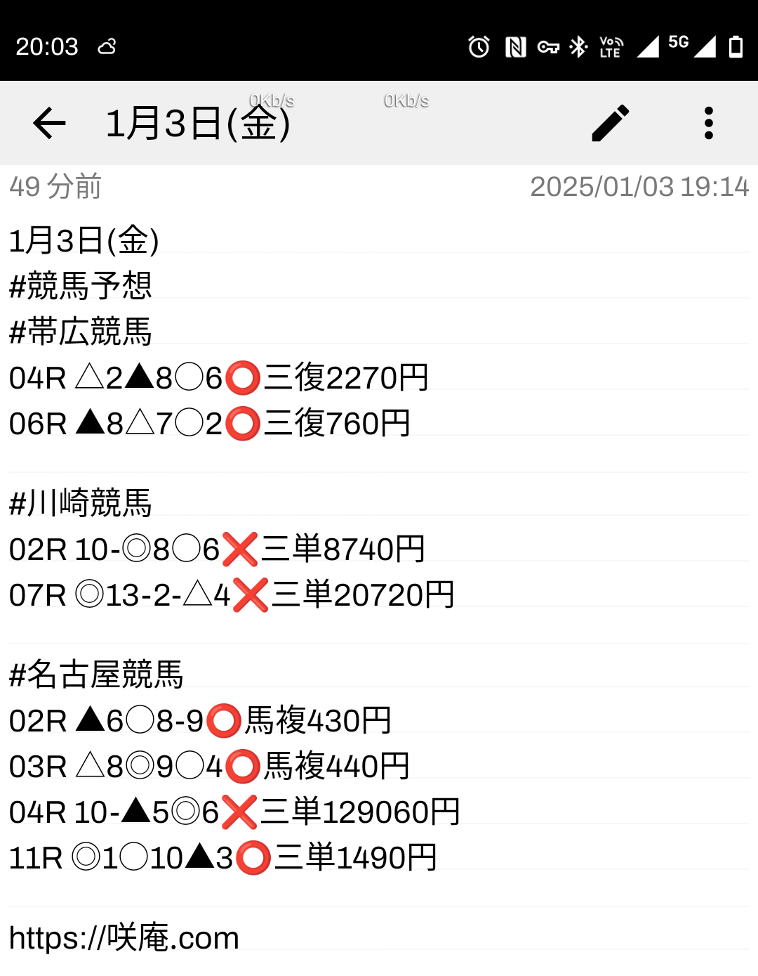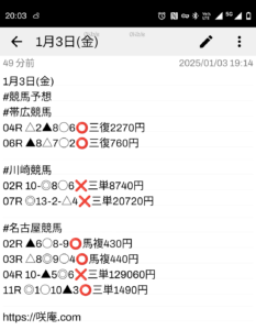 1月3日(金) 競馬予想