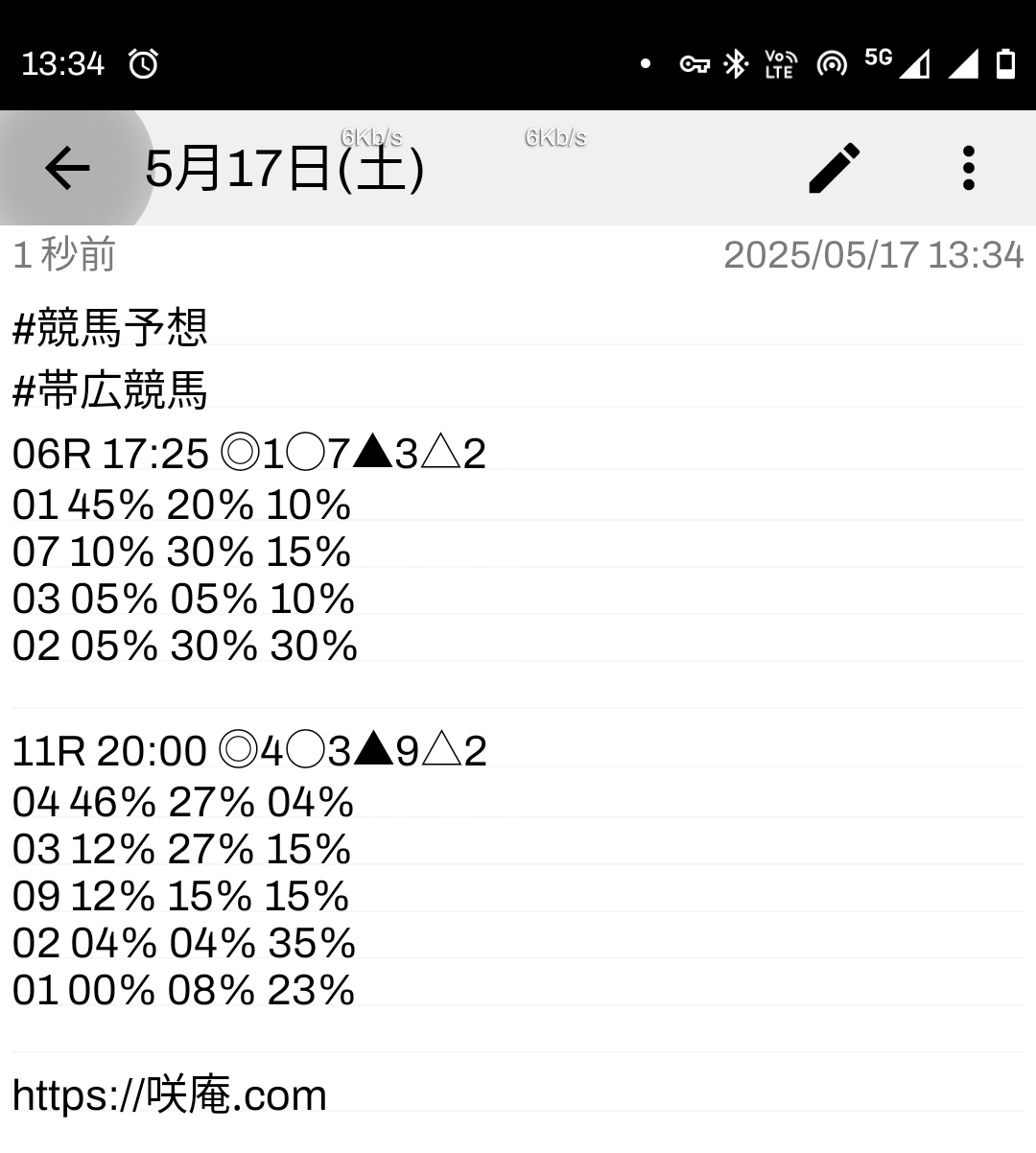 5月17日(土) 競馬予想