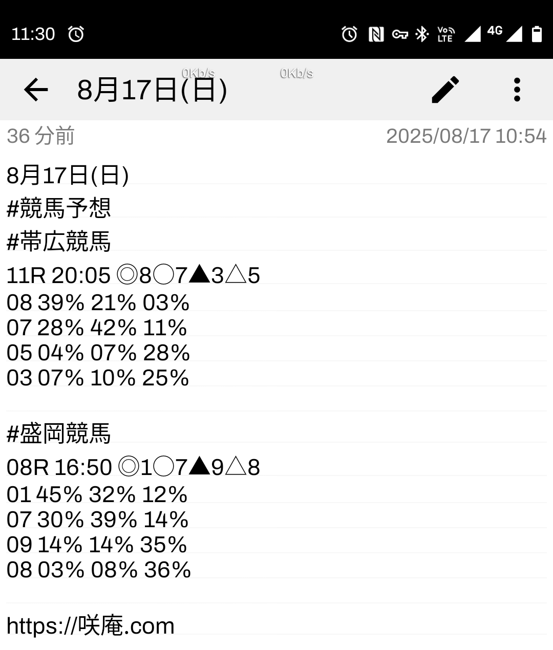 8月17日(日) 競馬予想