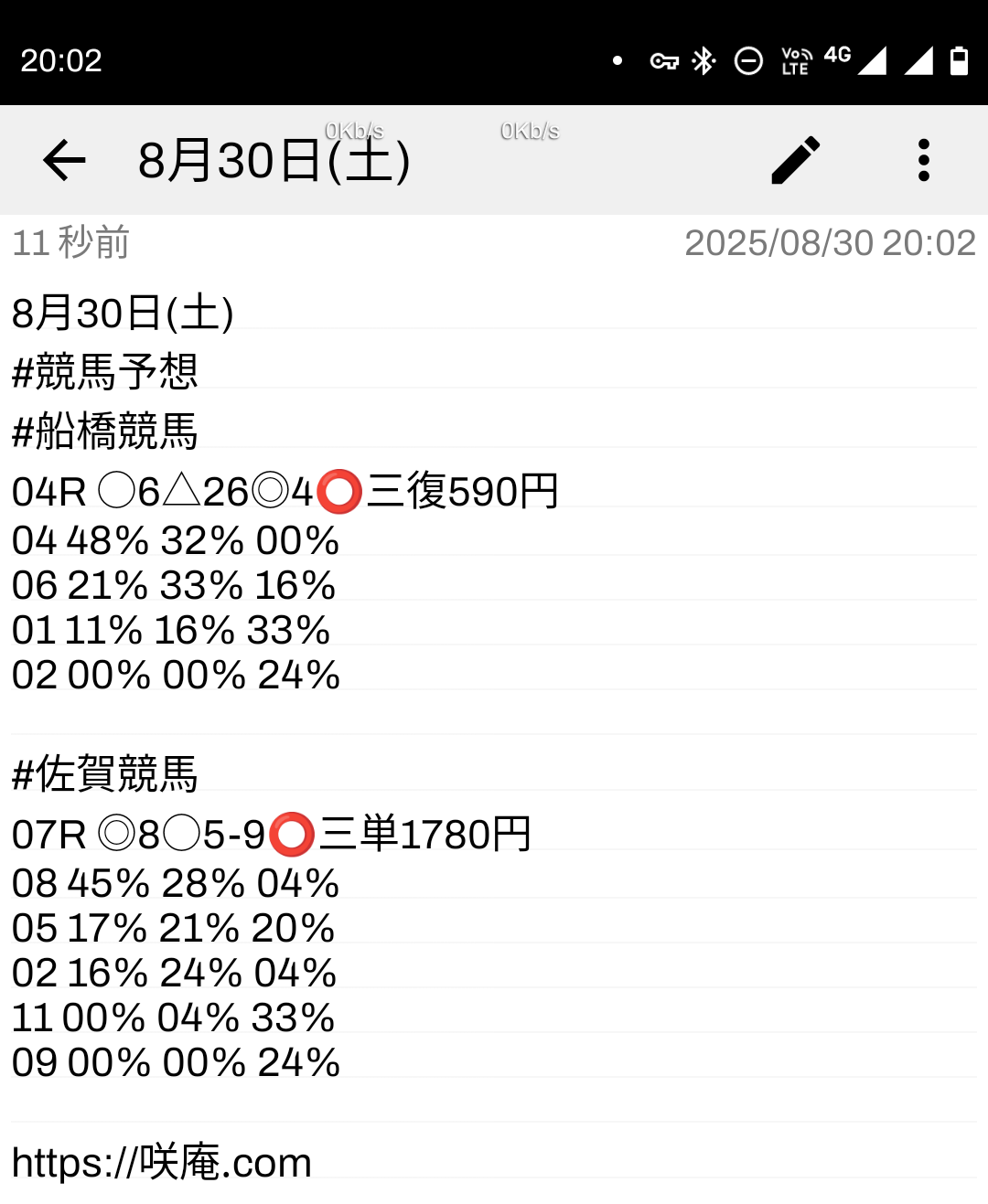 8月30日(土) 競馬予想