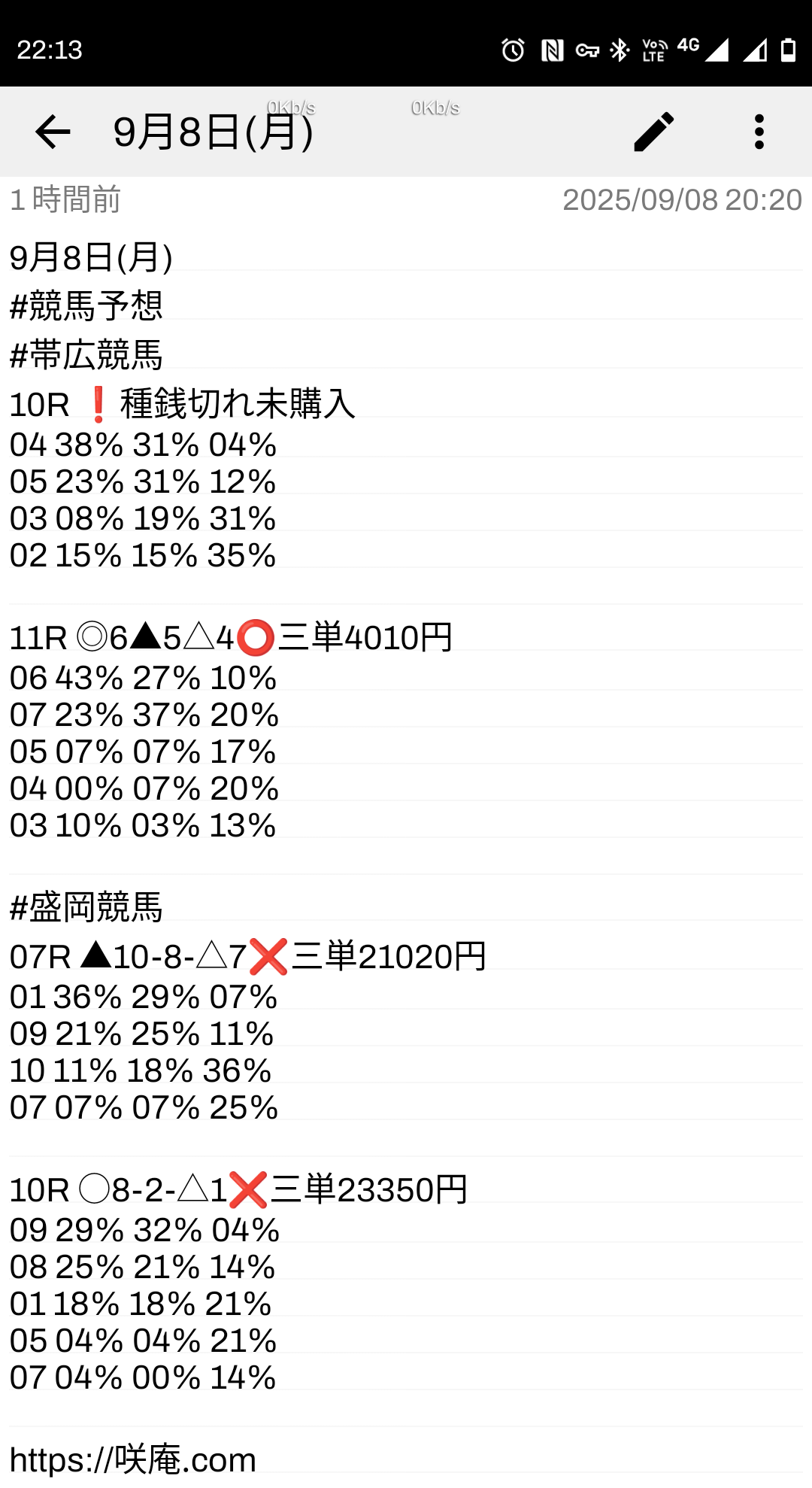 9月8日(月) 競馬予想