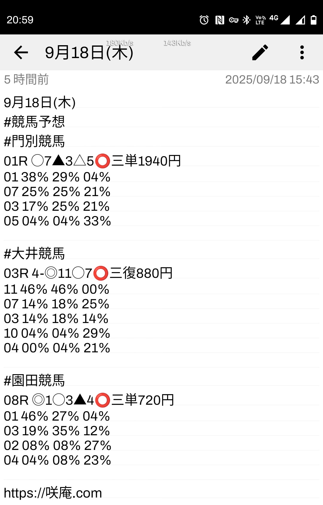 9月18日(木) 競馬予想
