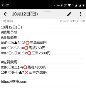10月12日(日) 競馬予想