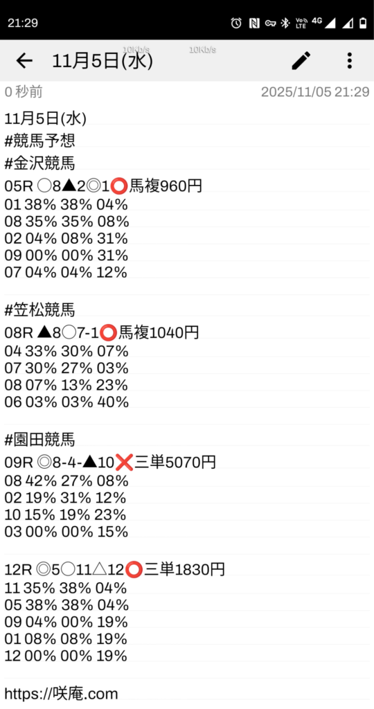 11月5日(水) 競馬予想