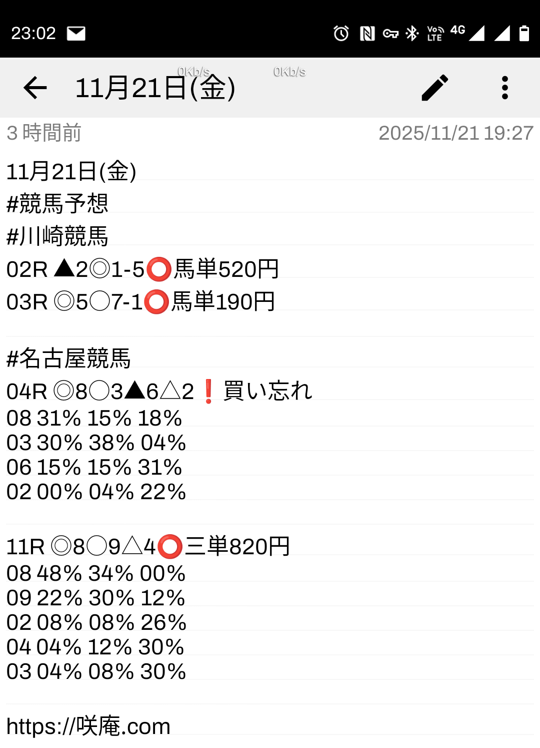 11月21日(金) 競馬予想 & ロト7予想