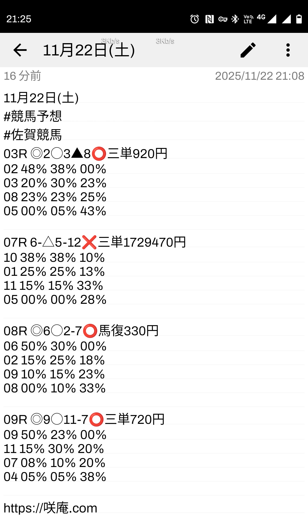 11月22日(土) 競馬予想
