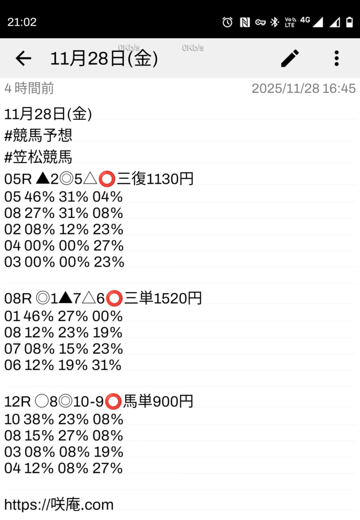 11月28日(金) 競馬予想 & ロト7予想