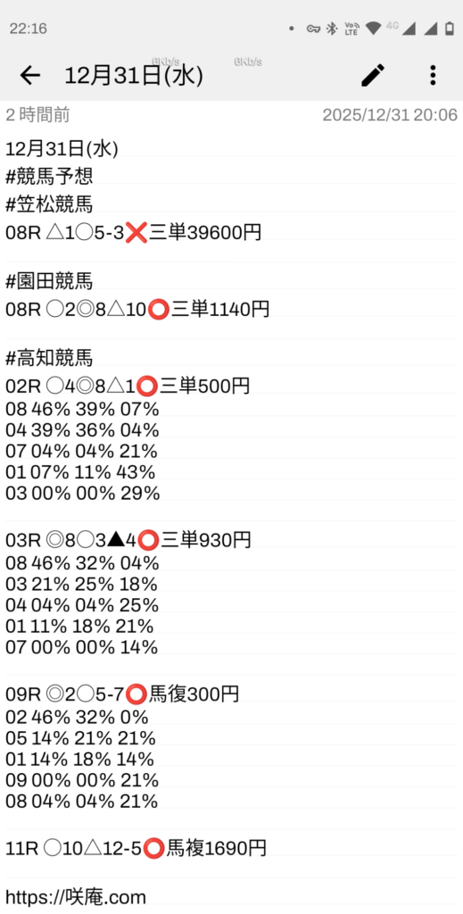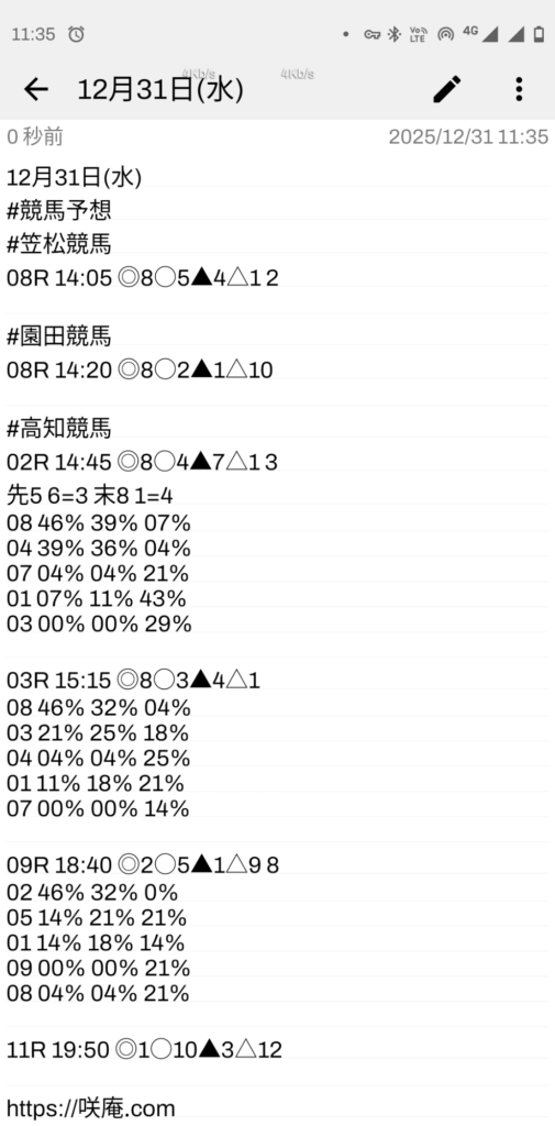 12月31日(水) 競馬予想