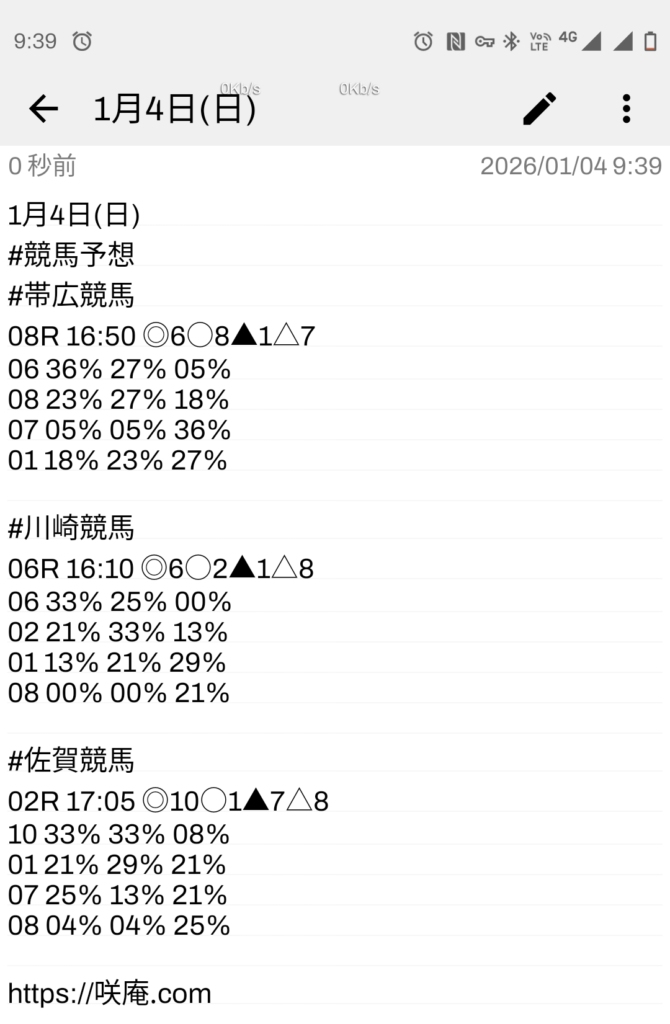 1月4日(日) 競馬予想