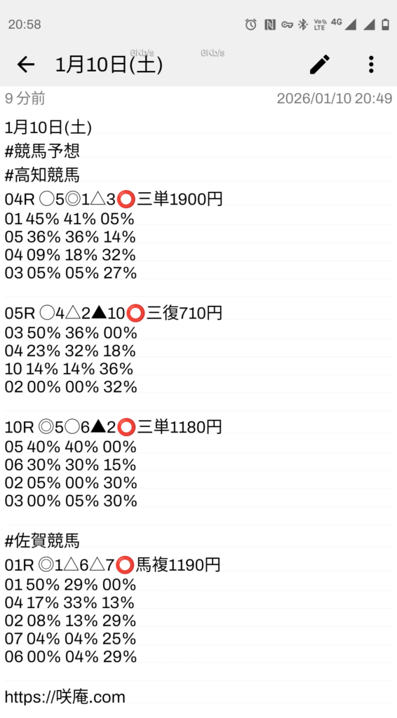 1月10日(土) 競馬予想