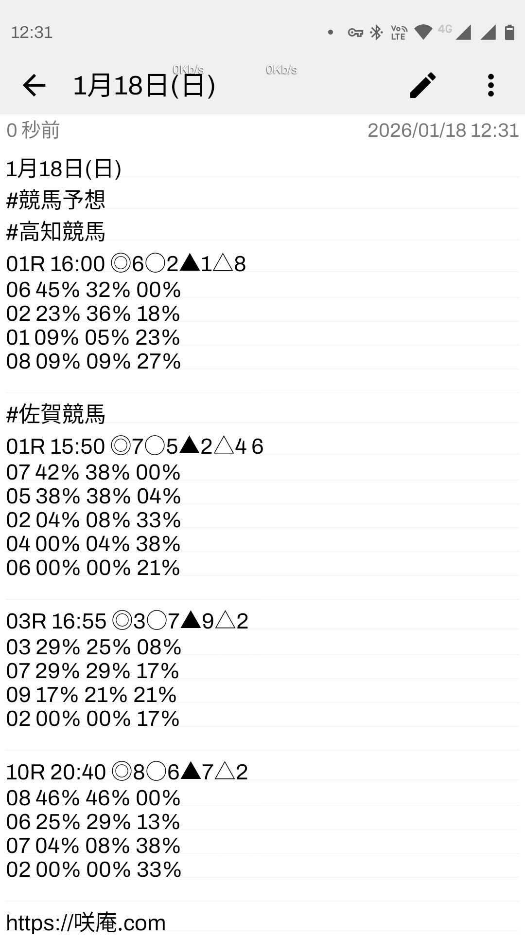 1月18日(日) 競馬予想
