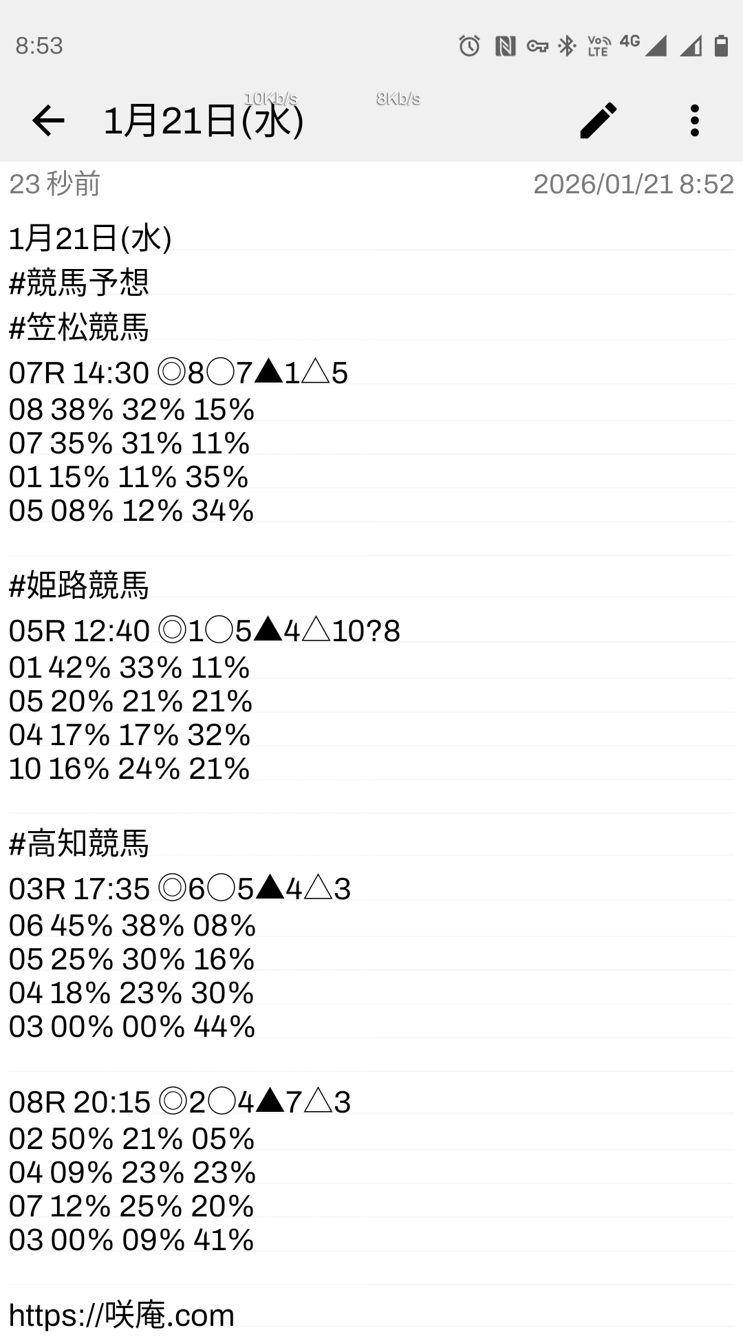 1月21日(水) 競馬予想