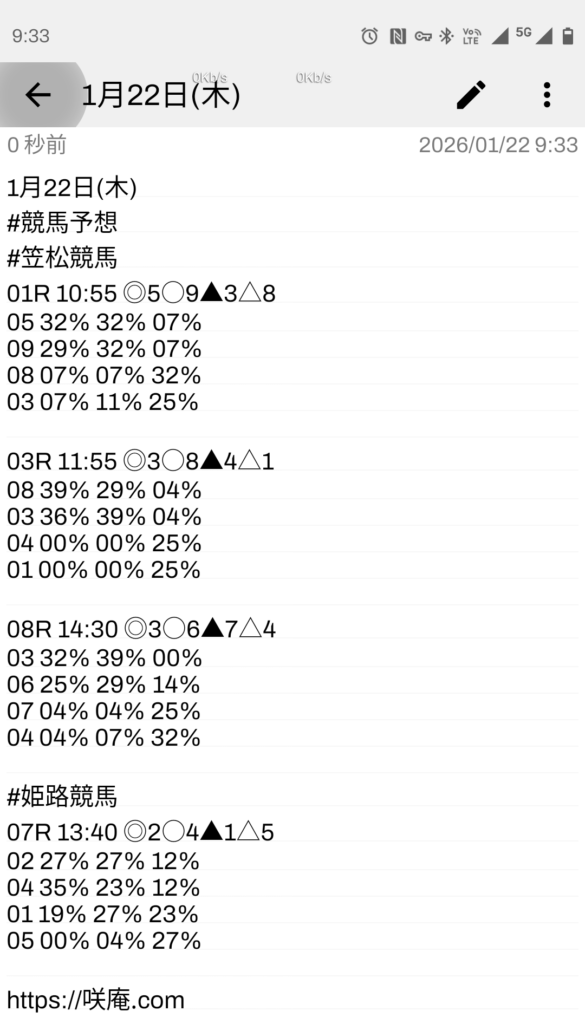 1月22日(木) 競馬予想