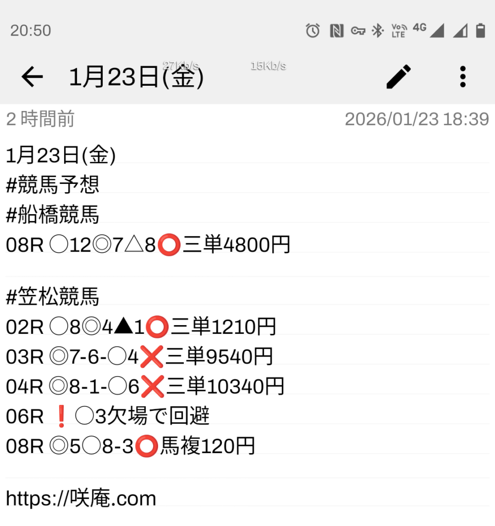 1月23日(金) 競馬予想 & LOTO7予想