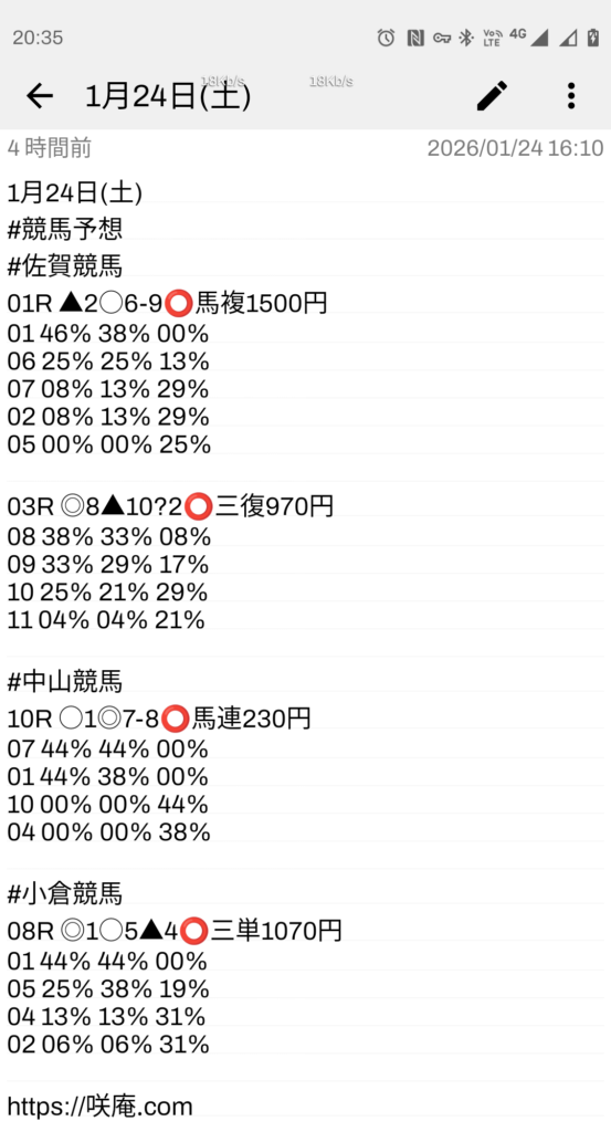 1月24日(土) 競馬予想
