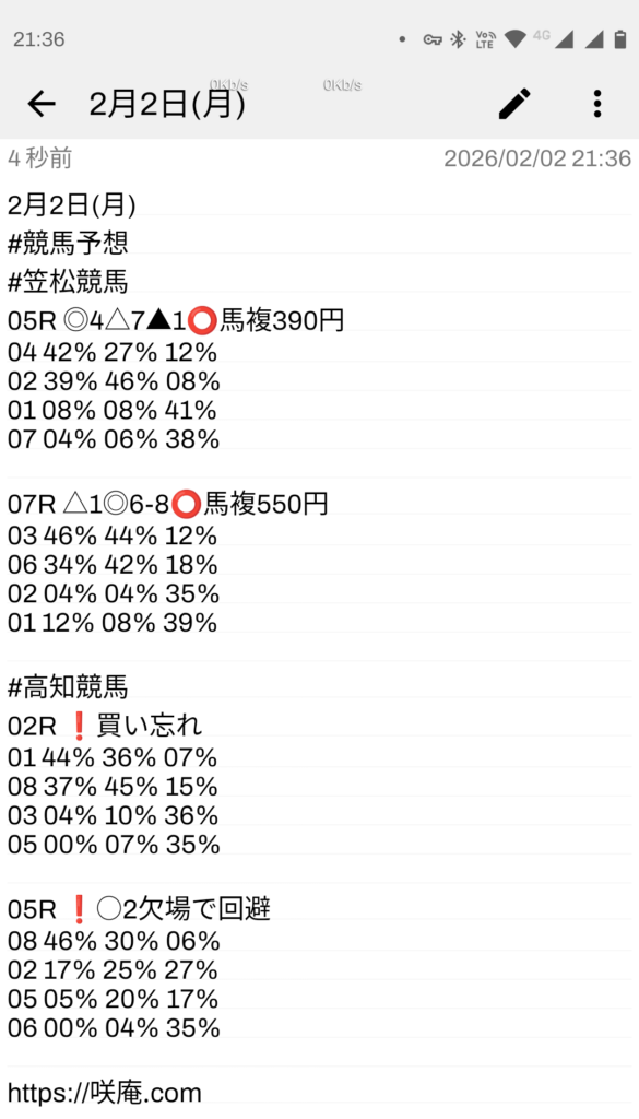 2月2日(月) 競馬予想
