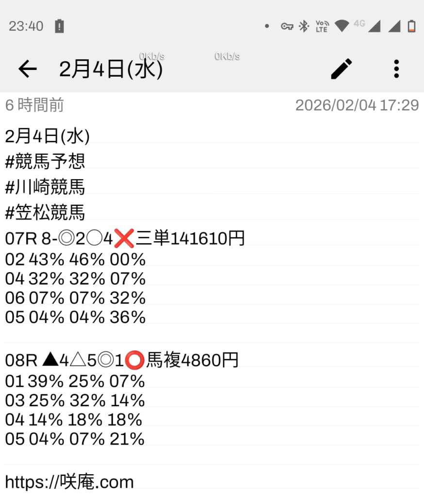 2月4日(水) 競馬予想