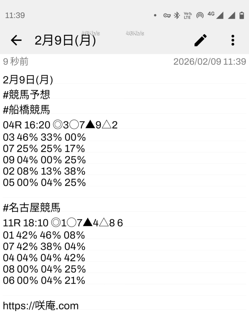 2月9日(月) 競馬予想