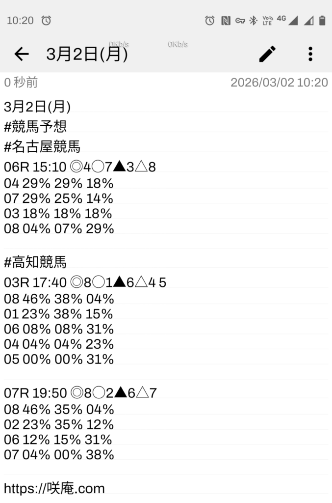 3月2日(月) 競馬予想