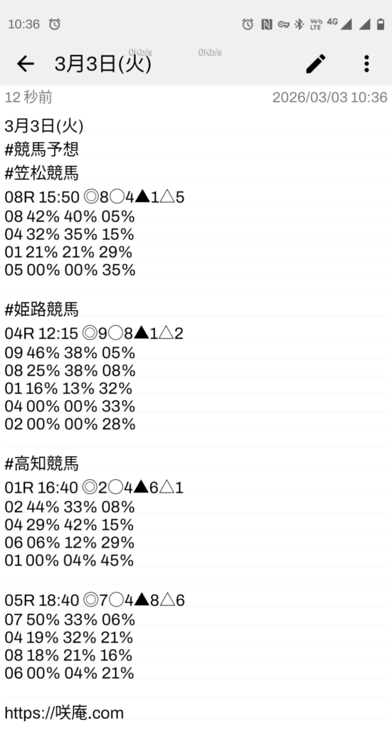 3月3日(火) 競馬予想