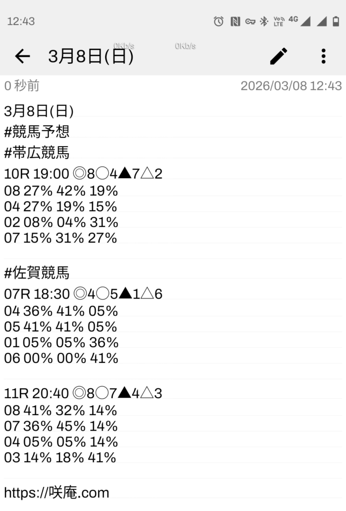 3月8日(日) 競馬予想