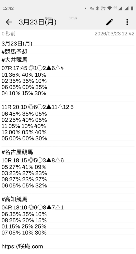 3月23日(月) 競馬予想