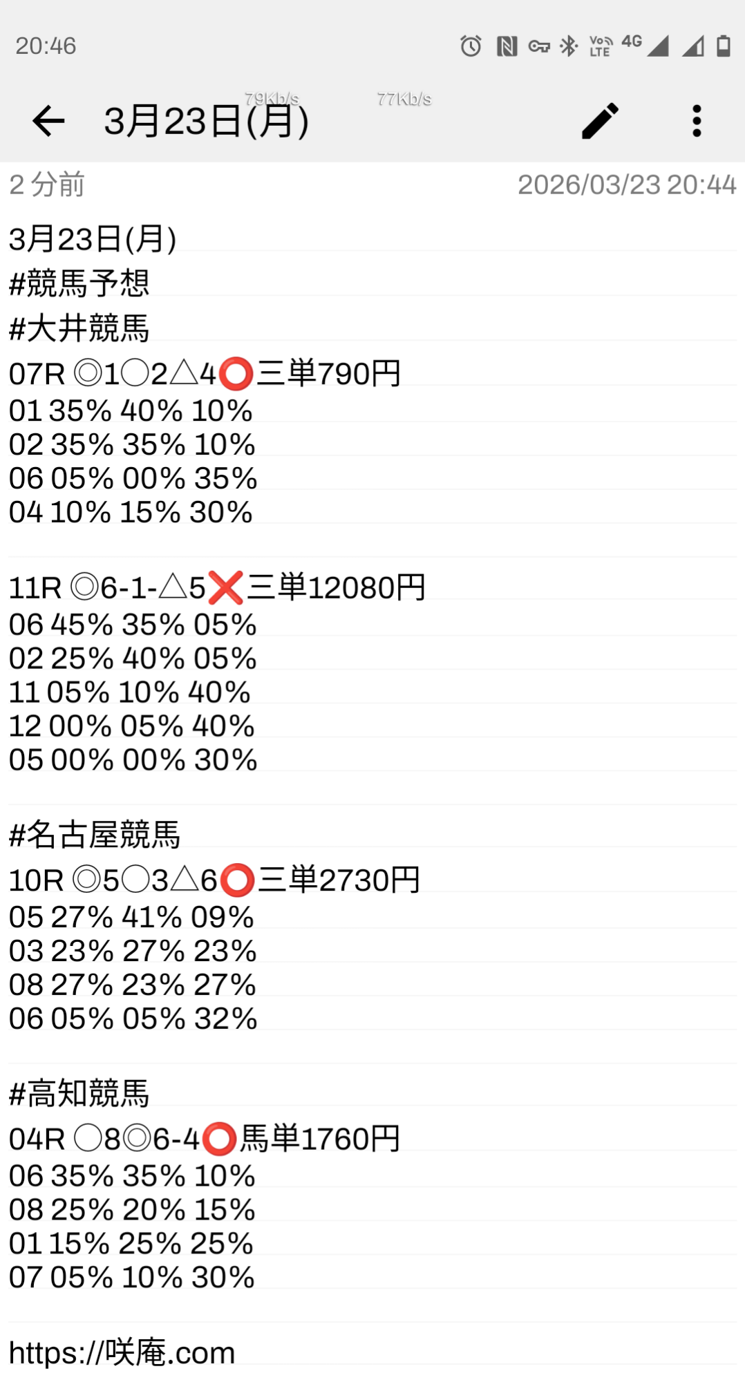 3月23日(月) 競馬予想