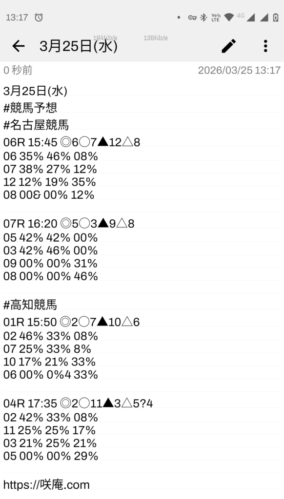 3月25日(水) 競馬予想