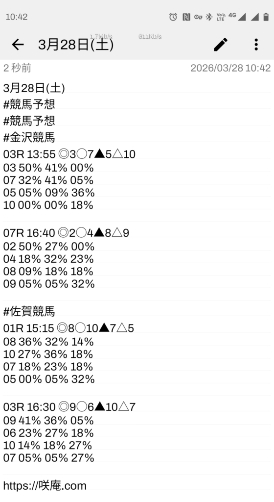 3月28日(土) 競馬予想