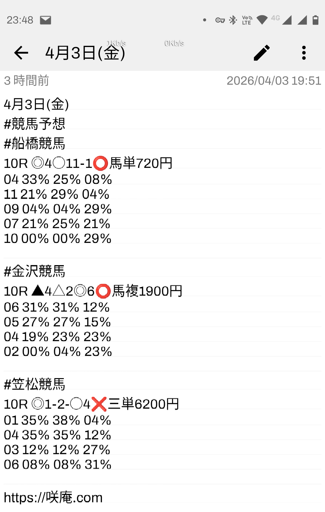 4月3日(金) 競馬予想 & ロト7予想