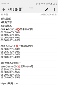 4月26日(日) 競馬予想