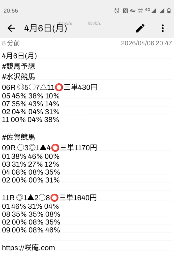 4月6日(月) 競馬予想