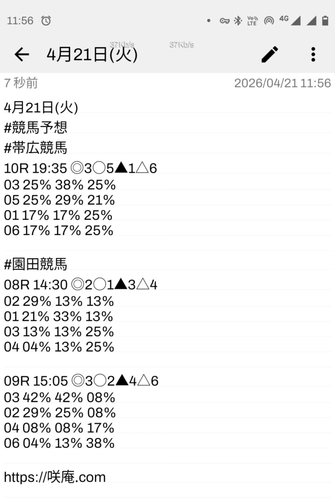 4月21日(火) 競馬予想