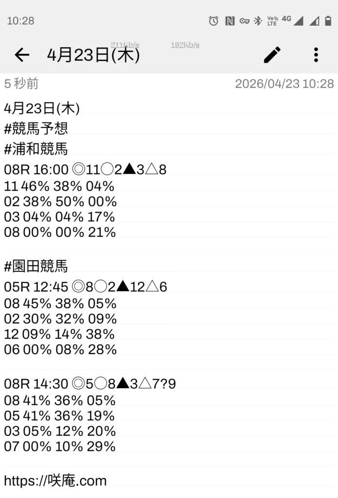 4月23日(木) 競馬予想